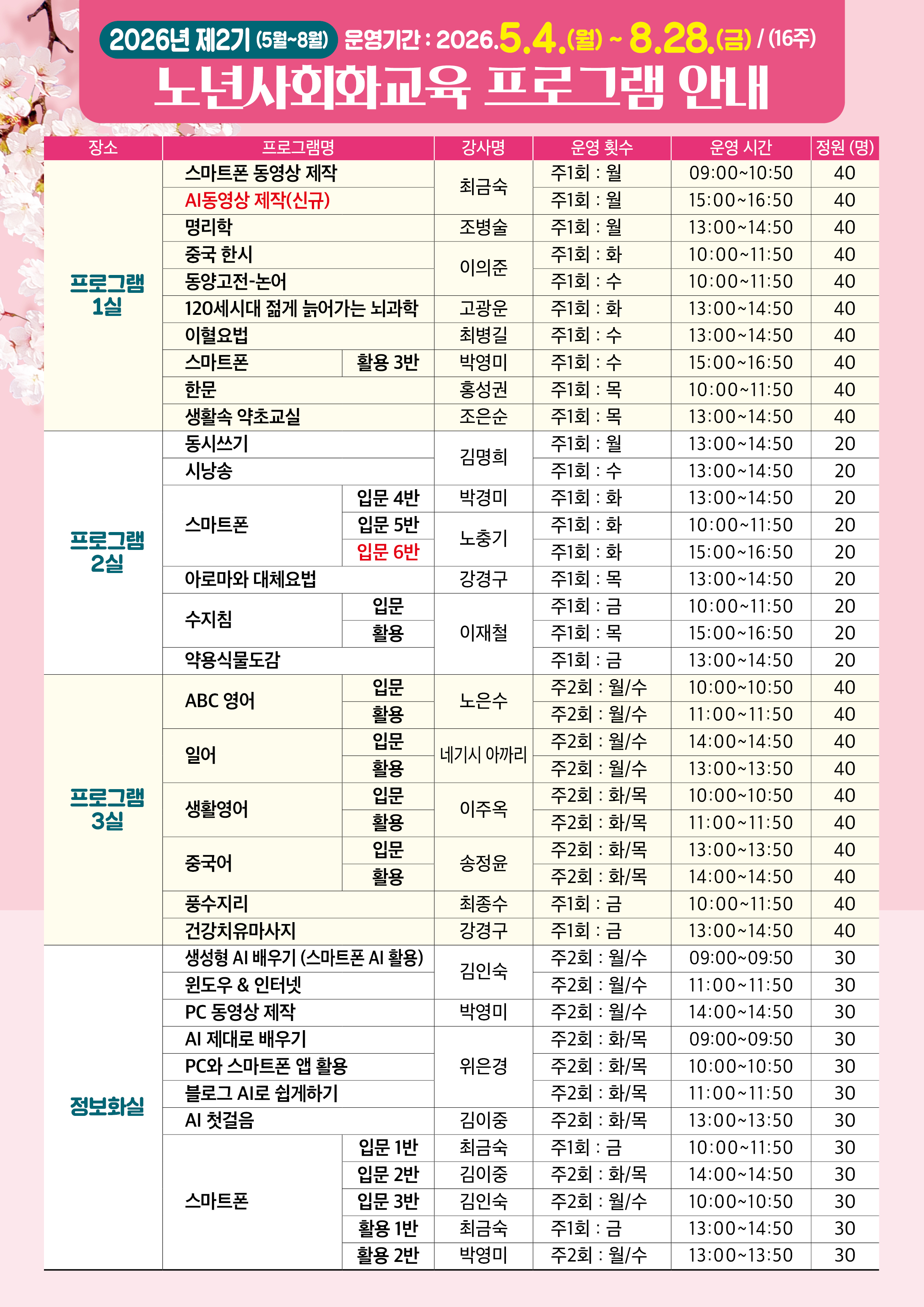 ★ ★ ★ 2026년 제2기 노년사회화교육 프로그램 수강생 모집안내 ★ ★ ★