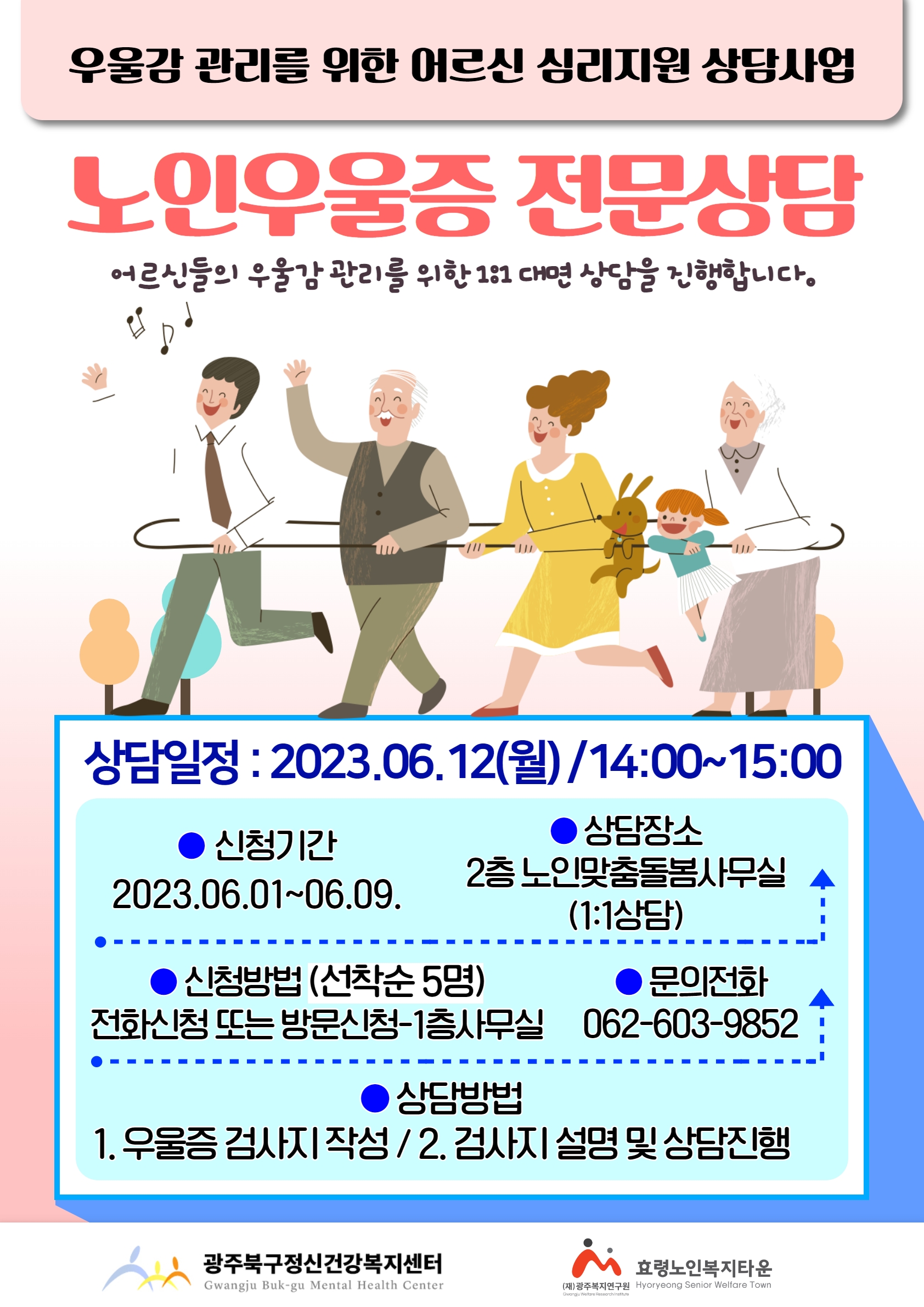 우울감 관리를 위한 어르신 심리지원 노인우울증 전문상담 선착순 5명
